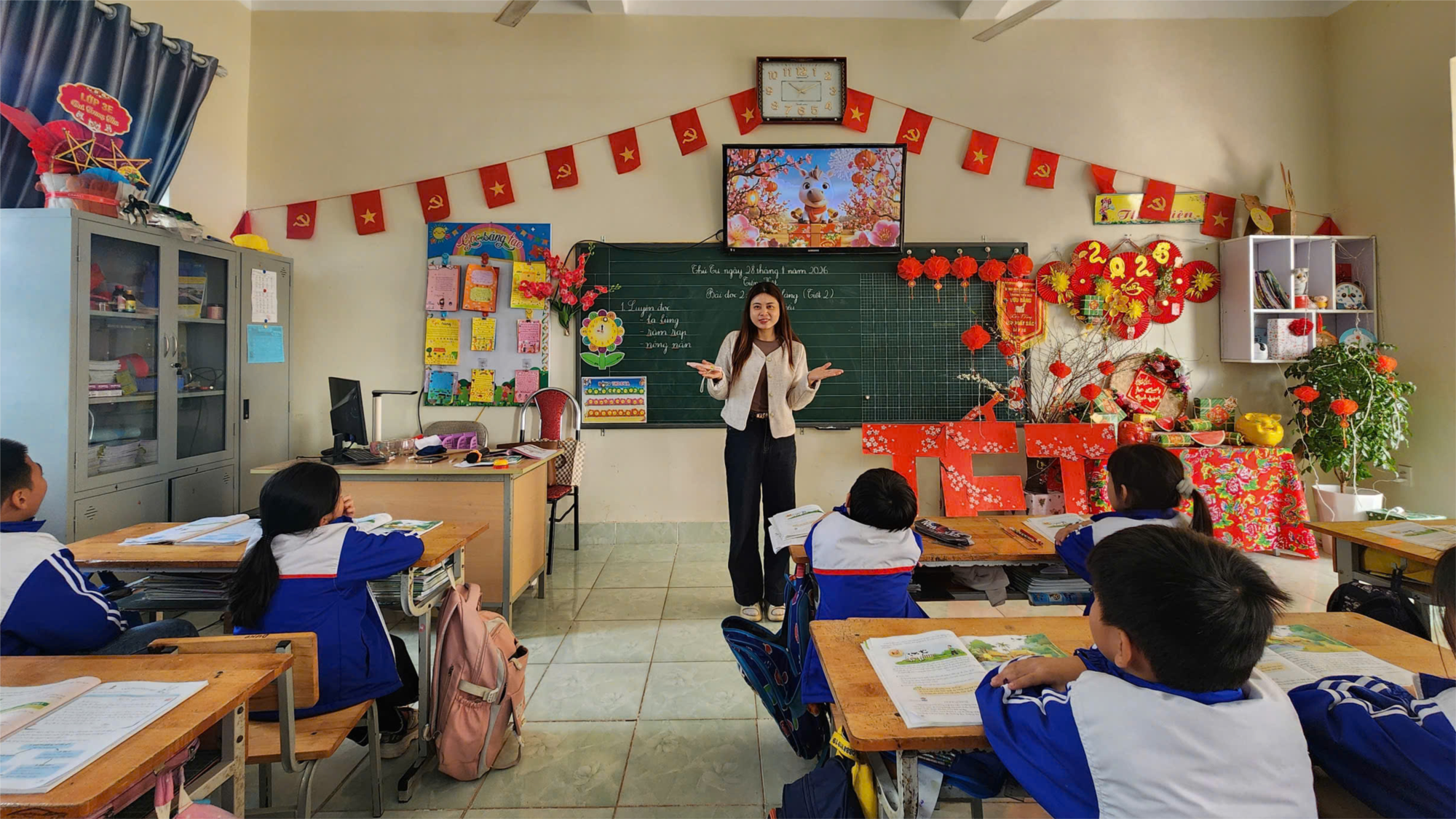 Trong tiết học, cả hai cô giáo đều đã vận dụng công nghệ AI như một công cụ dẫn dắt, gợi mở nội dung bài học, tạo tình huống học tập sinh động, giúp học sinh chủ động khám phá kiến thức và phát triển tư duy ngôn ngữ.