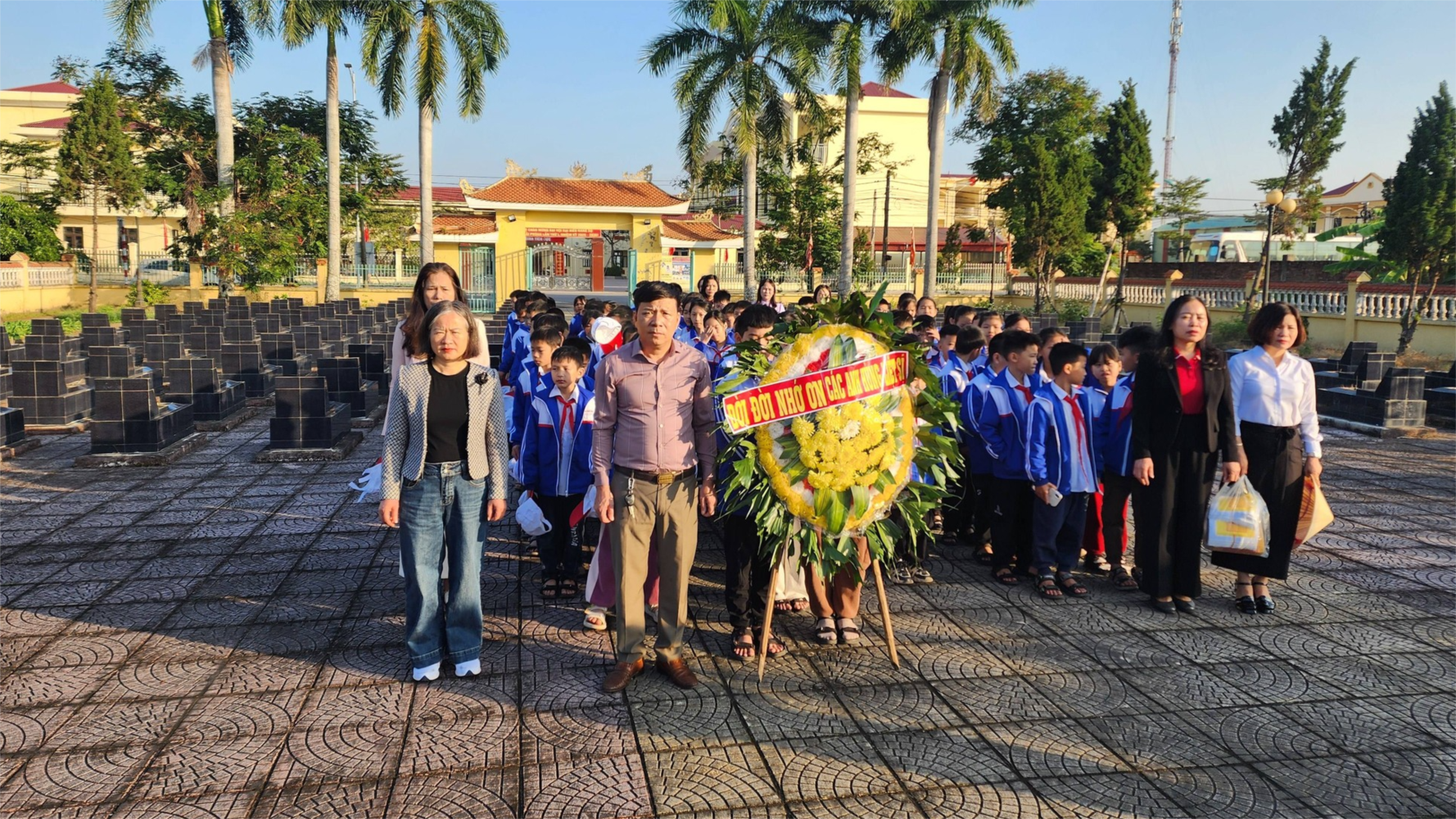 Trong không khí trang nghiêm, các thầy cô giáo, em đội viên, thiếu niên, nhi đồng của Liên đội đã tích cực tham gia quét dọn, thu gom rác thải, chăm sóc phần mộ các anh hùng liệt sĩ. Hoạt động thể hiện lòng tri ân sâu sắc đối với các anh hùng liệt sĩ, đồng thời góp phần giáo dục truyền thống “Uống nước nhớ nguồn”, bồi dưỡng lý tưởng cách mạng, ý thức trách nhiệm và tinh thần xung kích cho thế hệ trẻ.