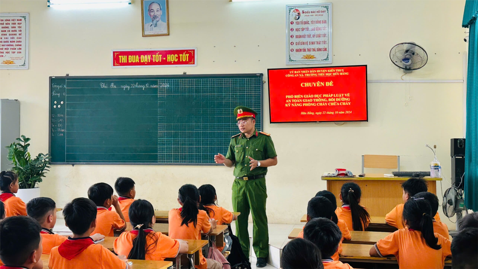 Nhằm tăng cường công tác tuyên truyền, giáo dục, phổ biến kiến thức pháp luật về an toàn giao thông và phòng cháy chữa cháy, cứu hộ cứu nạn, Trường tiểu học Hữu Bằng phối hợp với Công an xã Hữu Bằng tổ chức tuyên truyền các quy định về an toàn PCCC và an toàn giao thông (ATGT) cho cán bộ, giáo viên và học sinh nhà trường