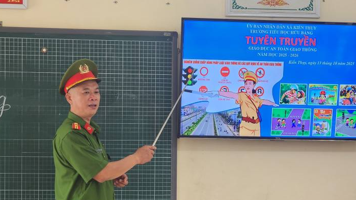 Nhằm đảm bảo an toàn giao thông và nâng cao ý thức của mỗi học sinh trong việc chấp hành luật lệ giao thông. Sáng ngày 13 tháng 10 năm 2025, trường Tiểu học Hữu Bằng đã phối hợp với Công an xã Kiến Thụy, tổ chức buổi Tuyên truyền về đảm bảo an toàn giao thông cho học sinh và hướng dẫn đội mũ bảo hiểm khi tham gia giao thông. Tại buổi tuyên truyền, đồng chí công an Phạm Xuân Phúc đã phổ biến, hướng dẫn Luật Giao thông đường bộ như: sang đường, đi bộ an toàn, không được chở quá số người quy định trên các phương tiện giao thông; chấp hành đội mũ bảo hiểm theo quy định, đội mũ bảo hiểm đúng cách … Thông qua buổi tuyên truyền nhằm cung cấp cho học sinh những kiến thức cơ bản về Luật Giao thông đường bộ; giúp các em nâng cao ý thức chấp hành pháp luật và tham gia giao thông đúng quy định, phòng ngừa tai nạn giao thông. Bên cạnh đó góp phần bảo vệ an toàn cho chính các em khi tham gia giao thông.